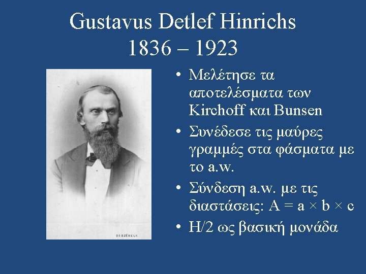 Julius Lothar Meyer 1830 – 1895 • Επηρεάστηκε από τον Cannizzaro: “The scales fell from my eyes and my doubts disappeared and were replaced by a feeling of quiet certainty. ” • 1862: στο βιβλίο του, 28 στοιχεία κατά αύξον a. w. • 1864: δημοσίευση άρθρου με 28 στοιχεία (οριζόντιες σχέσεις)