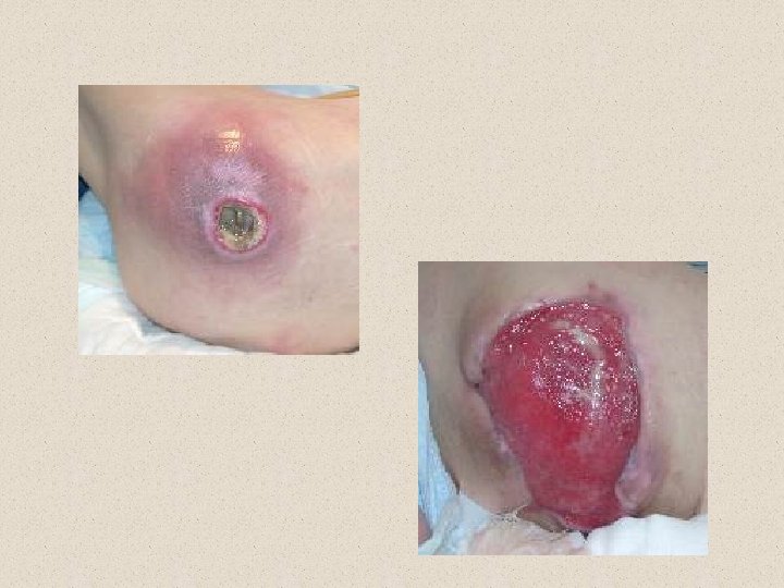 • Impetigo – pustules (bulbous impetigo) or honey colored crusted lesions on the skin – May be caused by staph or other bacteria