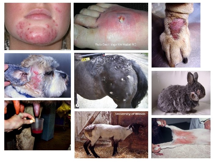 • Skin, upper respiratory tract, lower digestive system and urogenital system (all mucosal) • Opportunistic pathogen • Mastitis (60 -70%) • Lamb of pyemia Ø The irrational apse builds up abscess in other tissues (tick pie) • Botryomycosis in horses Ø Chronic, irritable, granulomatous wound • Irritable infections • Nosocomial infections (MRSA)