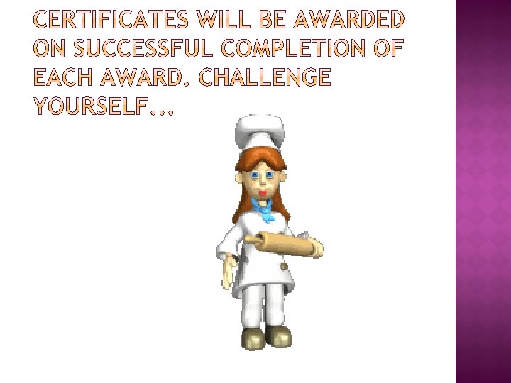 � Choose one of the three tasks to complete for homework. �Look at the criteria to pass the award. � You must provide evidence of each criteria point within your project. � Include photographs as evidence (or even a video). � To pass the award you must show your understanding of healthy eating and nutrition. Show that you understand that others (i. e. teenagers, toddlers, pregnant women) have different dietary needs and how these can be met. Explain why people eat or avoid certain food according to religion, culture, ethical belief, health need or personal choice. � It must be written in your own words – DO NOT COPY AND PASTE from the internet.
