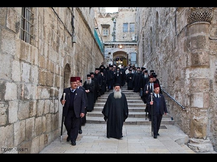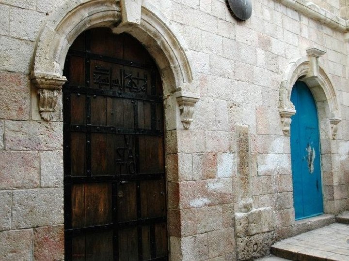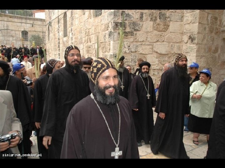 Stacja IX Wmurowana koło wejścia do klasztoru koptyjskiego kolumna wskazuje miejsce, w którym Jezus upadł po raz trzeci. Wejścia do Bazyliki Grobu Świętego.