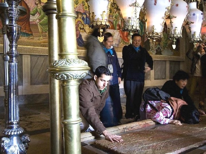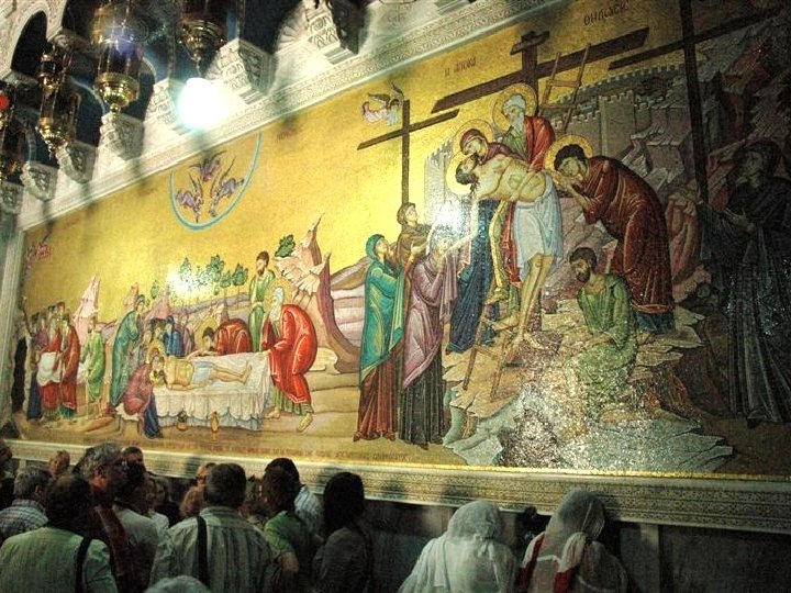 Bazylika Grobu Świętego (Bazylika Bożego Grobu), znajduje się w Dzielnicy Chrześcijańskiej na Starym Mieście, w miejscu, gdzie znaleziono domniemany grób Jezusa. Jest to miejsce niezwykłe - nie ma chyba na świecie drugiego takiego sanktuarium, w którym osobne miejsca i nabożeństwa mieliby przedstawiciele tylu wyznań chrześcijańskich. W bazylice znajduje się pięć ostatnich stacji Via Dolorosa. Pierwszą budowlę w tym miejscu zbudowano za zgodą cesarza Konstantyna I Wielkiego. Poświęcona w 336 roku została zburzona przez Persów w roku 614. Odbudowana przez Bizantyńczyków na krótko przed arabskim podbojem została ponownie zniszczona przez fatymidzkiego kalifa Al-Hakima w 1009 roku. Na jego rozkaz zniszczono też sam grób Jezusa. Odbudowę rozpoczęto już w 1012 roku i zakończono w latach 40. XI wieku. Po zdobyciu Jerozolimy w 1099 roku krzyżowcy rozpoczęli przebudowę bazyliki, która trwała do roku 1149. W późniejszych wiekach. bazylika była jeszcze wielokrotnie przebudowywana i remontowana. Obecny kształt uzyskała głównie w czasie wypraw krzyżowych. Zasadniczo wyróżnić można następujące jej części: rotundę z kaplicą Grobu Jezusa w centrum, chór Greków, kaplicę Golgoty, kryptę św. Heleny, klasztor franciszkanów z kaplicą Najświętszego Sakramentu, klasztor grecki z dziedzińcem oraz szereg kaplic usytuowanych przy wspaniałej średniowiecznej dzwonnicy. Za wejściem do wnętrza Bazyliki Grobu Świętego znajduje się Kamień Namaszczenia, na którym po zdjęciu z krzyża obmyto Ciało Jezusa, namaszczono i przygotowano do złożenia do grobu. Kamień Namaszczenia, barwy różowej, ma wymiary ok. 2, 70 na 1, 30 metra. Stale jest pokryty wonnościami i pachnidłami, które odgrywają wielką rolę w kulturze oraz pobożności i liturgii prawosławnej. Chrześcijanie prawosławni przykładają ogromną wagę do ucałowania tego miejsca i pocierania o kamień fragmentów swojej odzieży lub modlitewników. ENTER