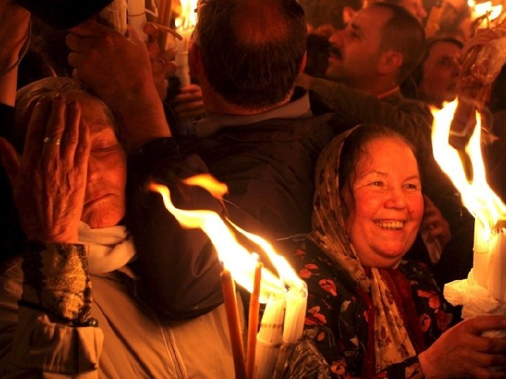 Święty Ogień. Przedstawiciele Kościoła Prawosławnego dowodzą, iż we wnętrzu bazyliki każdego roku zobaczyć można tzw. Cud Świętego Ognia. Ma on miejsce każdego roku w Wielką Sobotę (według kalendarza juliańskiego). Około godziny 13: 45 czasu miejscowego prawosławny patriarcha Jerozolimy trzykrotnie obchodzi kaplicę Bożego Grobu. Następnie zdejmuje szaty liturgiczne i z dwoma dużymi pękami świec (po 33 sztuki - tyle ile lat miał Jezus) wchodzi do kaplicy Anioła, a następnie do właściwej kaplicy Grobu. Wejście do kaplicy jest pieczętowane, a sam patriarcha, jeszcze przed wejściem do jej wnętrza, sprawdzany jest czy nie wnosi niczego dzięki czemu mógłby zaprószyć ogień. Po modlitwie, wedle relacji patriarchy, samoistnie pojawia się ogień na płycie Grobu Pańskiego, od którego zapala on świece i wynosi do wiernych, ogłaszając radosną nowinę o Zmartwychwstaniu Jezusa. Ogień schodzi też na pęki świec trzymanych przez zgromadzonych w świątyni. www. rotfl. com. pl ENTER BG