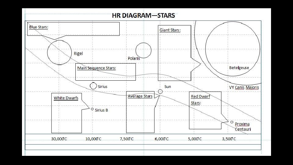 1. Add in the caption box from the Power. Point Show. 2. Color the star as they appear in the Power. Point Show. 3. Do not forget to color in the temperature bar at the bottom of the diagram.