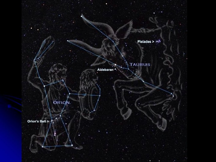 Taurus is located in the Northern Hemisphere, directly above Orion. l The Greeks saw this constellation as a bull l Taurus is one of 12 constellation that make up the zodiac l Astrologists believe that each person comes under a particular sign of the zodiac, depending on their date of birth l
