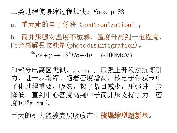 The evolutionary end points of stars with different masses shown as a function of central density BH 中子简并压 电子简并压
