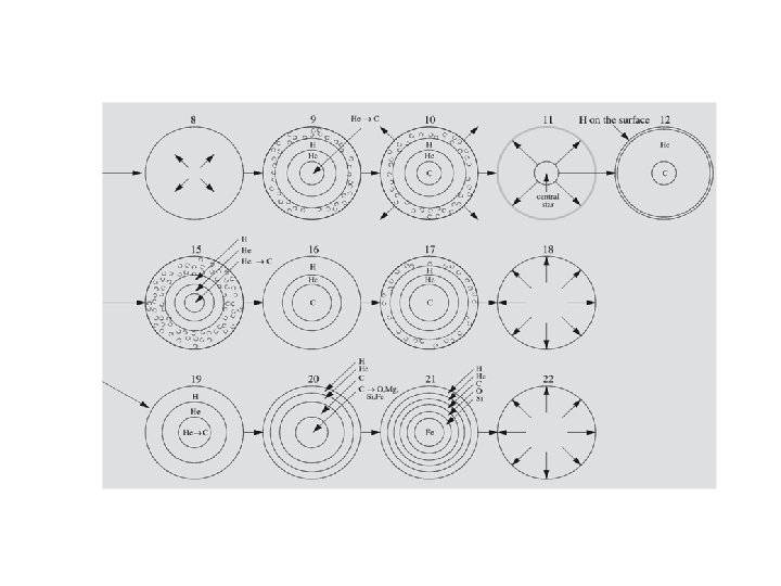 Evolutionary paths in the HRD up to the point where He burning sets in. The shade of the line segments indicates the time spent in the corresponding phases. MS (1 -3) life-times: 1. 0·MΘ: 9. 0 E 9 yrs 2. 2·MΘ: 5. 0 E 8 yrs 15·MΘ: 1 E 7 yrs GB (5 -6) life-times: 1. 0·MΘ: 1. 0 E 9 yrs 2. 2·MΘ: 3. 8 E 7 yrs 15·MΘ: 1. 5 E 6 yrs (6 -10) Iben 1967, ARAA