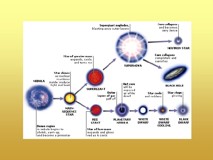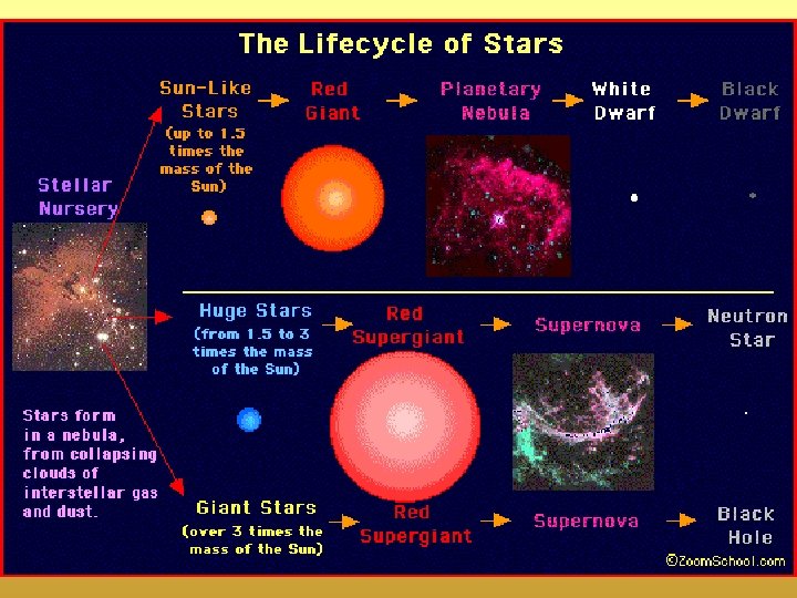 The Lives of Stars • A star’s life history depends on its mass. After a star runs out of fuel, it becomes a black dwarf, a neutron star, or a black hole. • Watch the Video Field Trip about Stars. • Visit PHSchool. com to view the “active art” about the lives of stars! • WEB code: cfp-5043