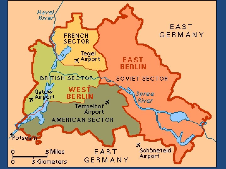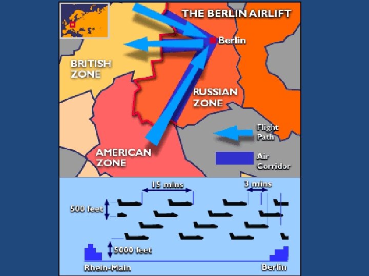 Berlin Airlift • East and West Germany were divided • USSR did not want them united and held Berlin hostage • US, Great Britain, and France flew in supplies for 11 months until Soviets lifted blockade