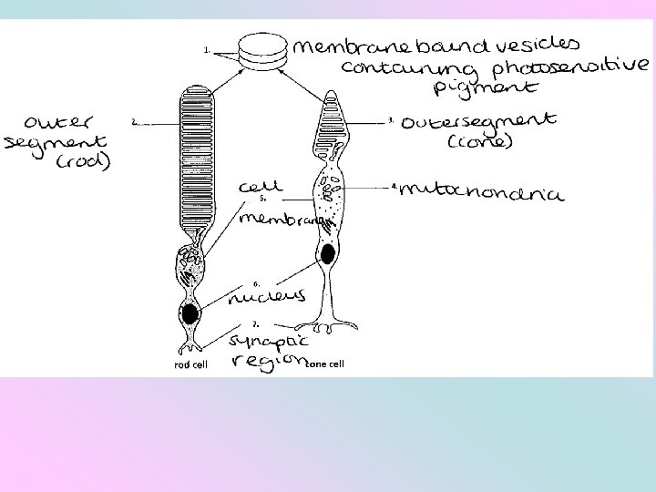 A rod cell LIGHT Rhodopsin (pigment in rod cells broken down) opsin Signal from Bipolar cell