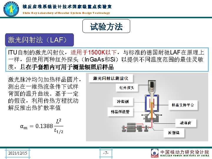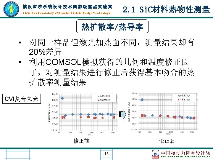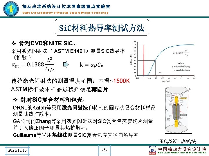 核反应堆系统设计技术国家级重点实验室 State Key Laboratory of Reactor System Design Technology 激光闪射法测量碳化硅复合包壳的数 值模拟 Numerical simulation of the laser flash method for meauring Si. Cf/Si. C composite clading b a, b Wenjie Li *, L. Vladhovic , T. R. Pavlov a Science and Technology on Reactor System Design Technology Laboratory, P. O. Box 502, 610213 Chengdu b European Commission, Joint Research Centre Karlsruhe, P. O. Box 2340, 76125 Karlsruhe, Germany 中国核动力研究设计院 NUCLEAR POWER INSTITUTE OF CHINA