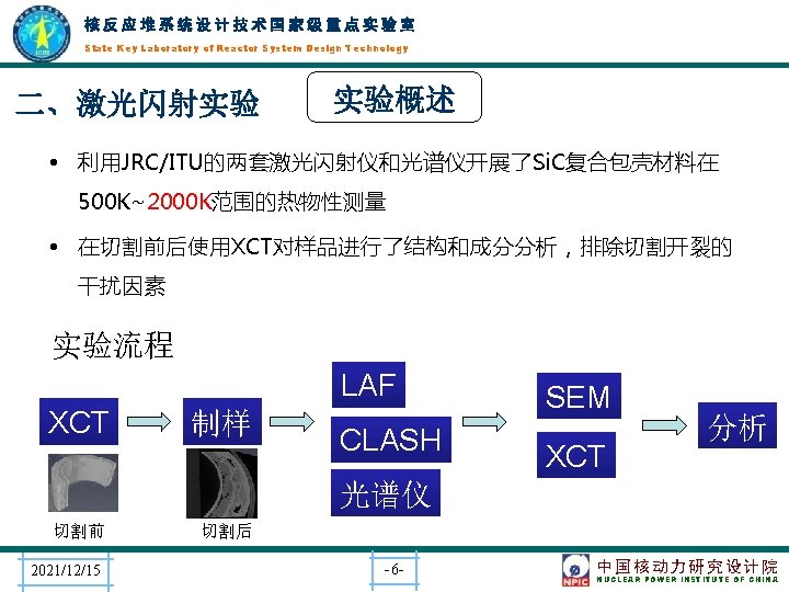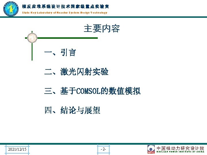 核反应堆系统设计技术国家级重点实验室 State Key Laboratory of Reactor System Design Technology 2021/12/15 -16 - 中国核动力研究设计院 NUCLEAR POWER INSTITUTE OF CHINA