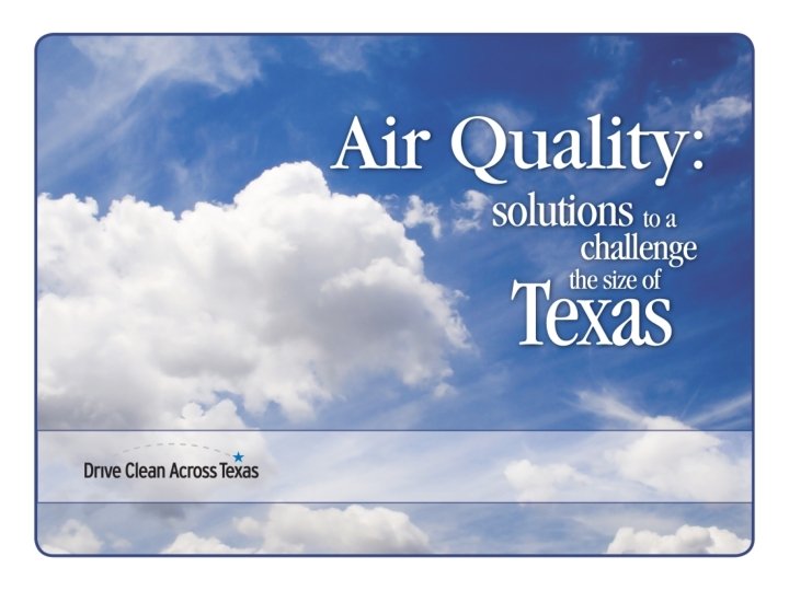 So, what’s Drive Clean Across Texas? It’s about… Taking ownership of our air statewide Showing pride in our trademark blue skies
