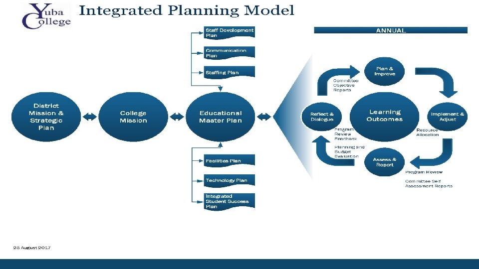 YCCD 8 Measures of Student Success (BOT October 2016) 1. Assessment of College Readiness 5. Persistence 2. Semester Course Completion 6. Degree/Certificate Completion 3. Progression through Developmental Courses 7. Transfer 4. Successful Completion of Developmental Courses 8. Employment Yuba College Integrated Plan Objectives 1. 2. 3. 4. 5. Increase the number of students eligible for college level English and math courses Increase the number of students persisting term to term Increase the rate and number of students completing courses, degrees and certificates Increase the rate and number of students transferring to a 4 -year university Create an environment supportive of professional learning