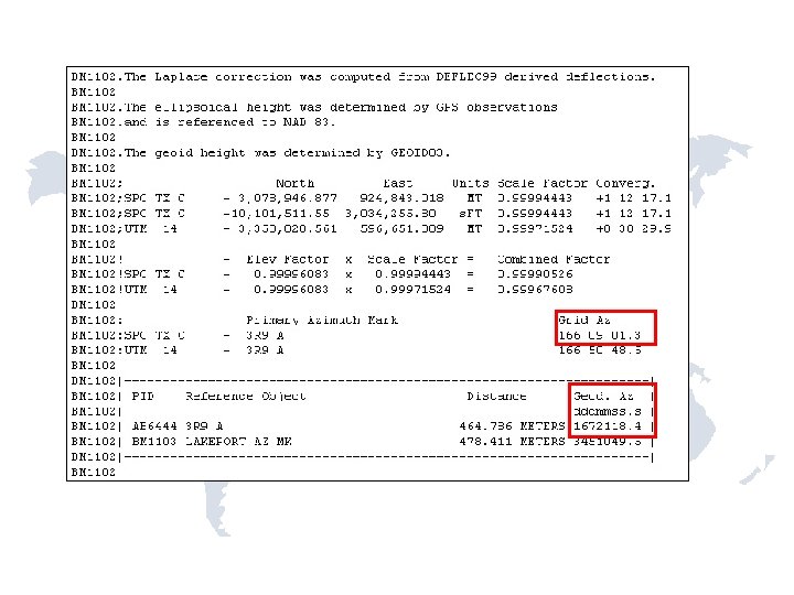 N = 3, 078, 495. 629 E= N= 924, 954. 270 -25. 13 k = 0. 99994523 Convergence angle +01 -12 -19. 0 LAPLACE Corr. -4. 04 seconds