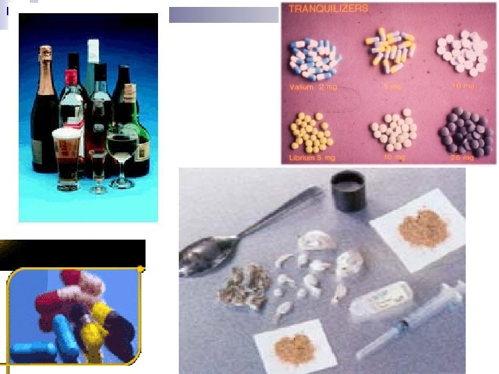 Depressants n Chemicals that slow down behavior or cognitive processes; inhibit central nervous system activity; relieve anxiety, lower inhibitions, lowers pain; affects the brain areas responsible for arousal, wakefulness and alertness, coordination n Including: Alcohol, Barbiturates, Tranquilizers, Opiates (painkillers such as Heroin)