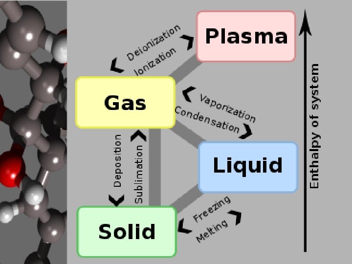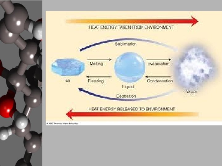 Balls in Box Demo • Small vibrations = Solid • More Energy Added in the form of heat energy, bouncing inside box = Liquid • Even More Energy Added in the form of heat energy, balls falling out of box = Gas (evaporation) Heavier molecules evaporate at a slower rate. • Putting the balls back into the box = Condensation