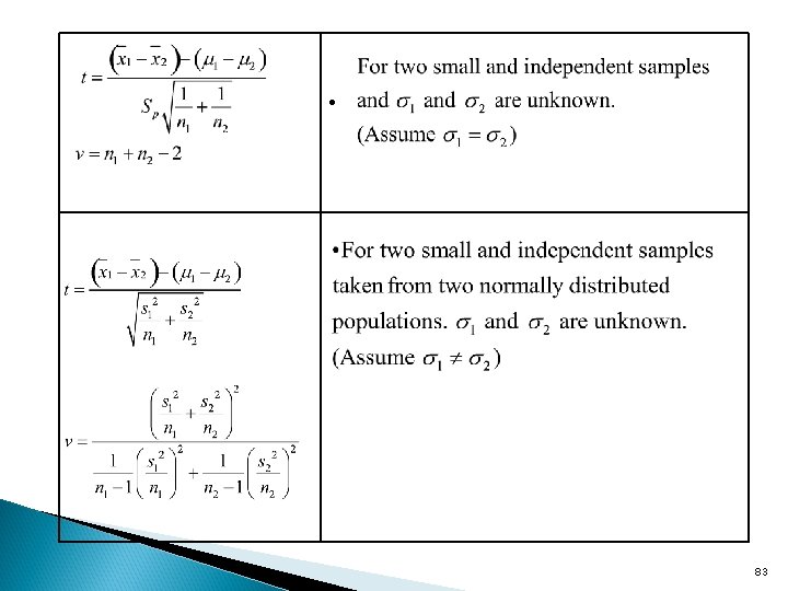 b) Hypothesis Test For the Difference between Two Populations Means, Test statistics: • • • 82
