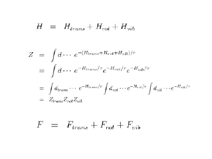 Additive Hamiltonian • If the Hamiltonian of a system is a sum of independent terms, the partition function is a product of independent terms, and thus the free energy is again a sum of independent terms. • We used that for the ideal gas. • Other example: Particle with translational, rotational, and vibrational degree of freedom