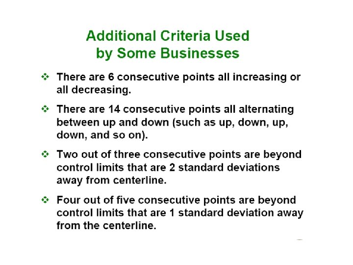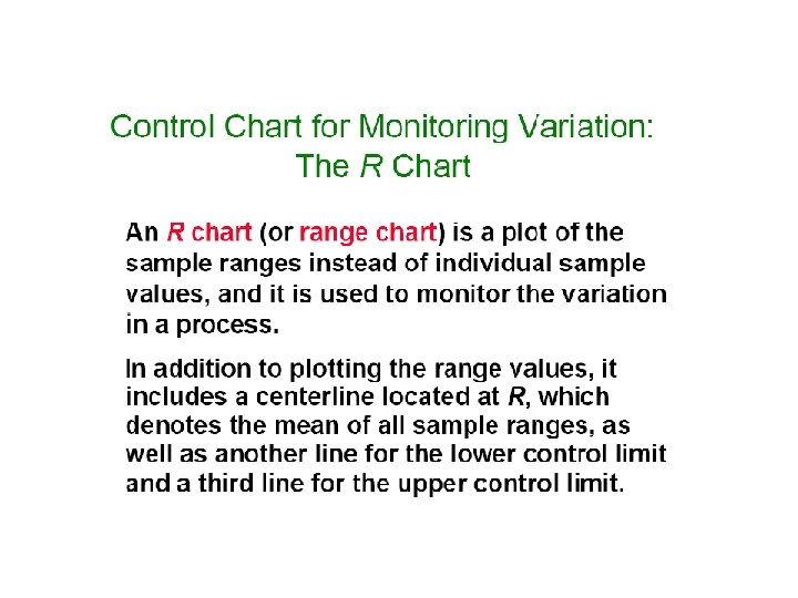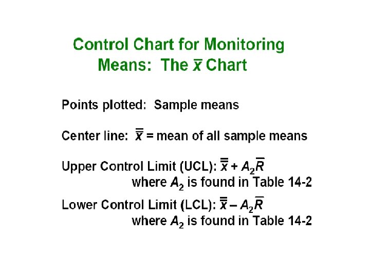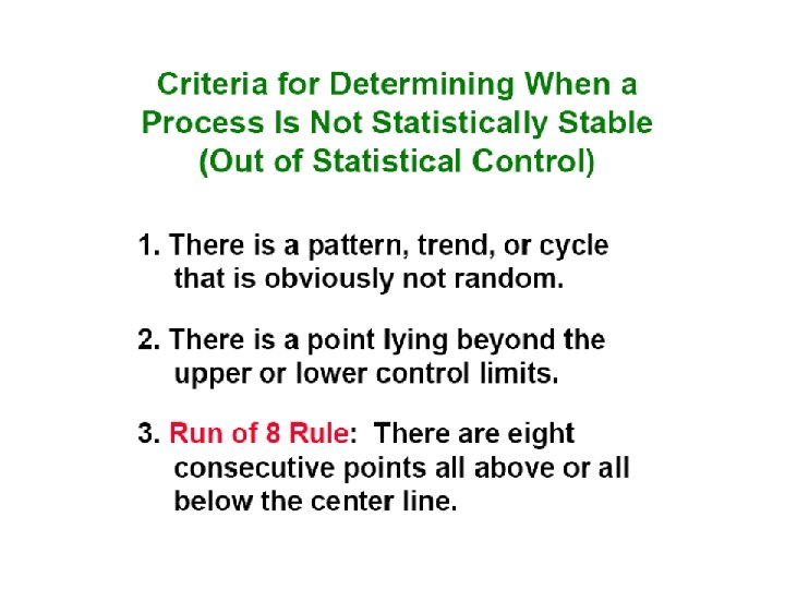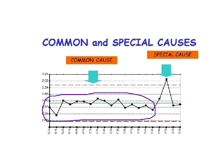 Random causes that we cannot identify Unavoidable, e. g. slight differences in process variables like diameter, weight, service time, temperature Causes can be identified and eliminated: poor employee training, worn tool, machine needing repair