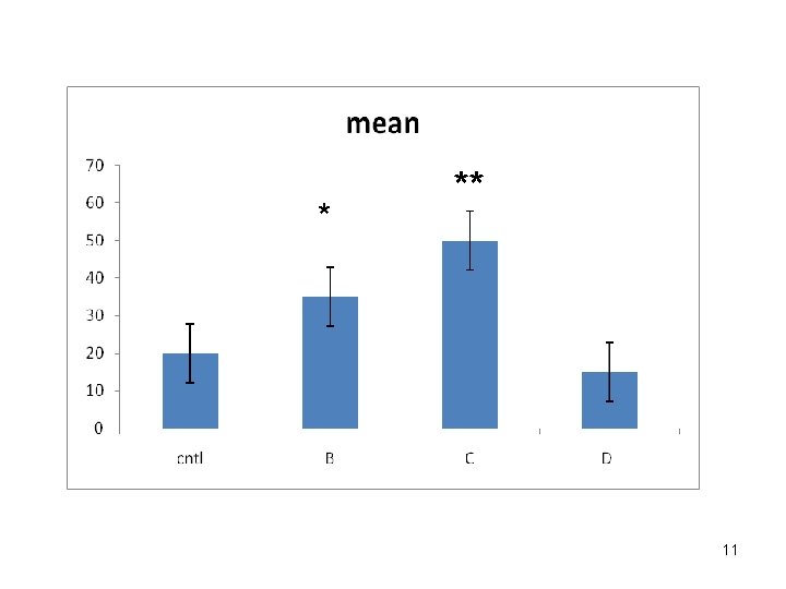 Try not to use asterisks to report p values * = 0. 05 ≤ p < 0. 10 ** = 0. 01 ≤ p < 0. 05 *** = p < 0. 01 10