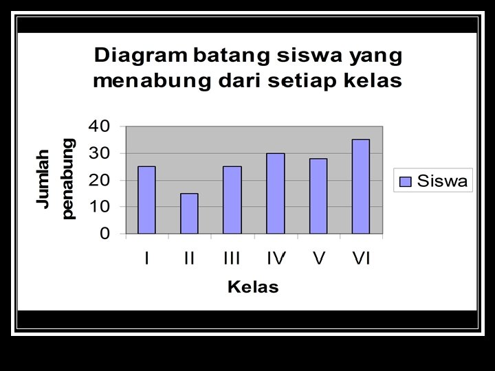 Contoh 2 Tabel Jumlah siswa yang menabung untuk kelas I s. d. VI Kelas I II IV V VI Banyaknya Penabung 25 15 25 30 28 35
