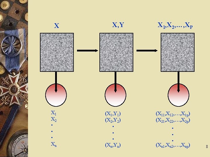 Variabel : satu Lebih dari satu univariat multivariat Data : ( jika sampel berukuran n ) X 1, X 2, …, Xn X 11, X 12, …, X 1 n X 21, X 22, …, X 2 n • • • Xp 1, Xp 2, …, Xpn p = banyaknya variabel 2 4