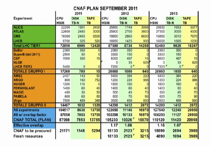 Risorse Dismissioni CPU • • Anno TB 2012 15519 2012 0 2013 66255 2013 1800 2014 26884 2014 0 2015 31488 2015 5900 1 box “vecchia” ~96 x 2 HS 06 ~ 0. 61 E/HS 06 Valutare upgrade blade? Senza server! Presso estremamente competitivo (ripetibile? ) Costo tape: ~ 40 E/TB (con trade-in) • • HS 06 Costo disco (2011): 261 E/TB • • Anno Costo CPU(2011): 13 E/HS 06 • Con costi occulti (da sommare costo rete etc. . ) Manutenzione vecchie CPU: 98 E/box (2 mb) • • • Dismissioni disco 1 tape driver: ~ 15 KE Rinnovo hw servizi (extra wn, extra disk-server), manutenzioni (es. SAN)