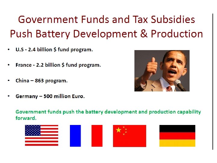 THE COST ISSUE Battery type AVERAGE PRICE PER CELL IN 2005 Lead- acid 0. 15 Ni-Cd 0. 95 Li-ion (CLi. Co. O 2) 1. 35 Li-ion (CLi. Mn 2 O 4) 1. 10 Ni-MH 2. 00 Cost of lithium batteries in comparison with other rechargeable systems Source : The rechargeable battery market, 2005 -2015, June 2006 Cost (US$/W) Source : TIAX, based on MEDI data
