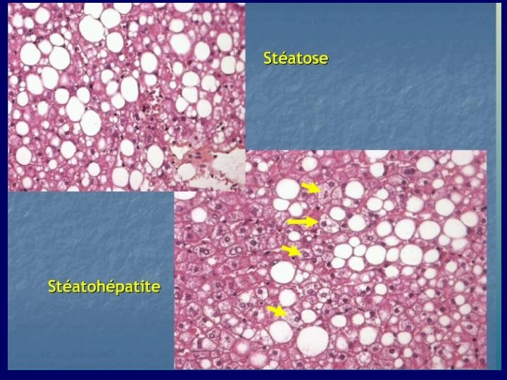 Définitions • • NAFLD: non alcoholic fatty liver disease Stéatose NASH: non alcoholic steato-hepatitis Cirrhose