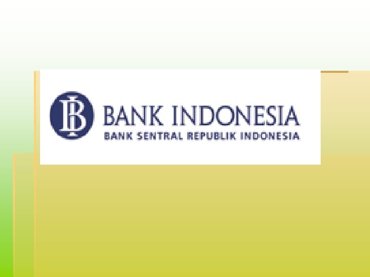 Tugas Keterangan Menetapkan dan melaksanakan kebijakan moneter §Melakukan pengendalian moneter §Berperan sebagai Lender of the last resort (Membantu kesulitan pendanaan jangka Pendek yg dihadapi perbankkan nasional) §Menetapkan kebijakan nilai tukar §Mengelola cadangan devisa §Menyelenggarakan survei Mengatur dan menjaga kelancaran sistem pembayaran §Mengatur dan menyelenggarakan kliring serta penyelesaian transaksi §Mengeluarkan dan mengedarkan uang Mengatur dan mengawasi bank • Menetapkan peraturan • Memberikan dan mencabut ijin • Melaksanakan pengawasan • Memberikan sanksi