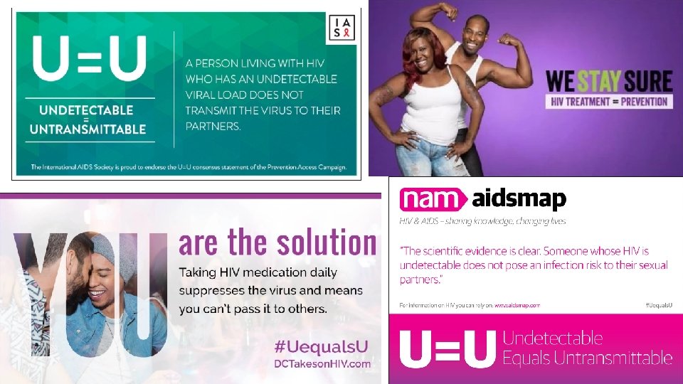Undetectable = Untransmittable PARTNER Study – AIDS 2016 1166 heterosexual and gay sero-divergent couples, not using condoms Zero transmissions from over 58, 000 times that couples had sex without condoms The only instances of transmission were linked to sexual activity outside the couple When a person living with HIV has an undetectable viral load, the risk of passing on the virus to another person is ZERO Source: Rodger AJ et al for the PARTNER study group. Sexual activity without condoms and risk of HIV transmission in serodifferent couples when the HIV-positive partner is using suppressive antiretroviral therapy. JAMA, 2016; 316(2): 1 -11. DOI: 10. 1001/jama. 2016. 5148. (12 July 2016). Full free access. http: //jamanetwork. com/article. aspx? doi=10. 1001/jama. 2016. 5148