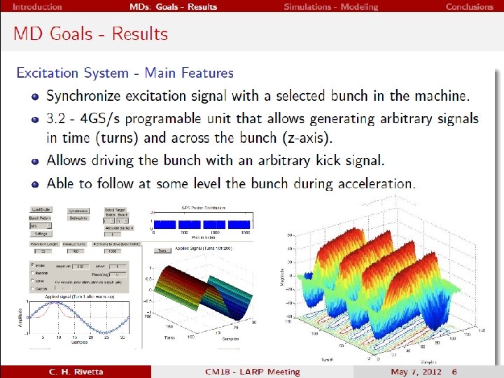 Feedback System Team* *LARP collaboration: SLAC, LBNL, CERN • Beam excitation and MD tests: Rivetta, Fox, Cesaratto, Hofle, Uemuda, Turgut, Pivi, Wehrle • Simulations: Rivetta, Pivi, Li, Secondo, Vay – Head-Tail development: Pivi, Li • Kicker design: De Santis, Cesaratto • Feedback design: all