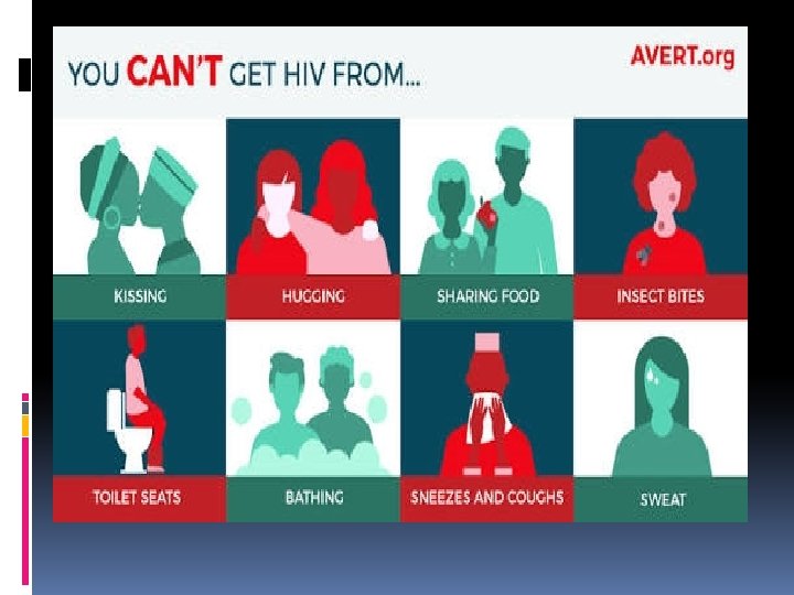Facts HIV is not airborne and cannot be caught by touching skin, sweat or saliva You cannot get HIV by holding hands or sharing drinks Mosquito’s do not inject other peoples blood when they bite and so cant spread HIV