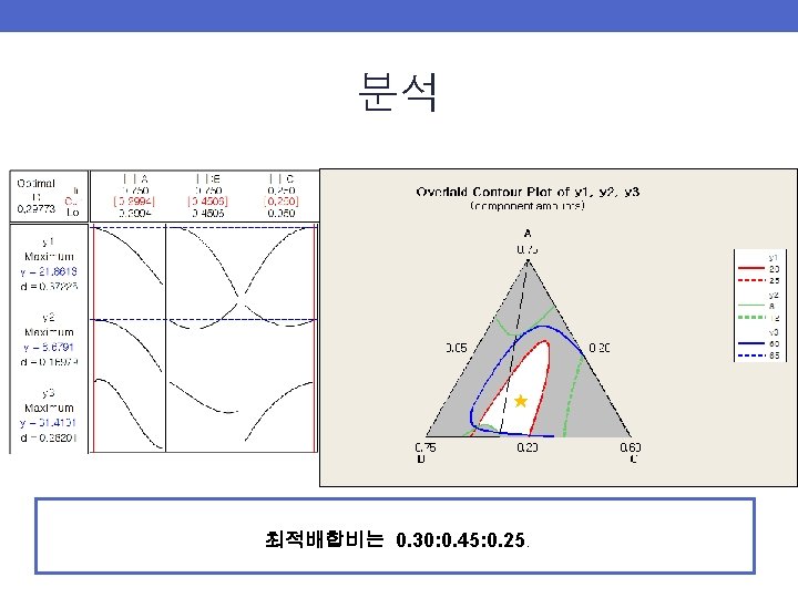 Total Optimization ★ 가중치 3: 1: 2 최적배합비는 0. 33: 0. 42: 0. 25.