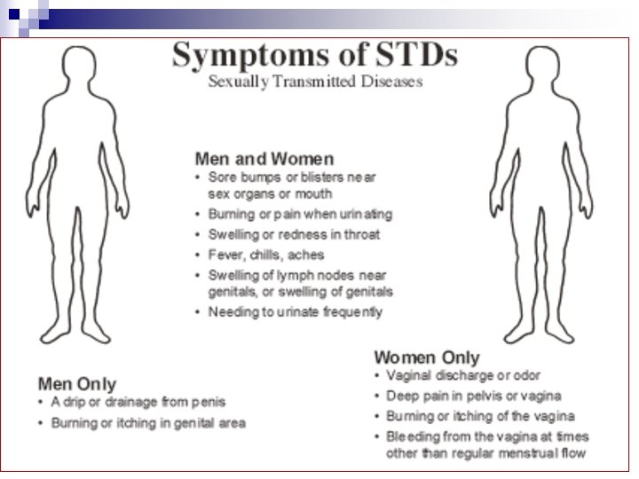 n n Most common symptom is NOTHING!!!! So if you have no symptoms are you going to go get tested? Get treatment? Make sure you do not pass this to others? ¨ No you will not…… ¨ Unless you are responsible & get tested every time you are with a new partner n Have you already been sexually active? ¨ If so, have you been tested for ALL STDs? ¨ If not, how do you know if you have one or not?