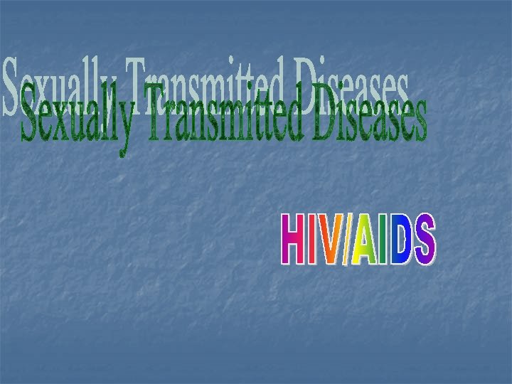 n n Chlamydia Four million new cases occur each year SYMPTOMS: fever, weight loss for no reason, swollen glands, fatigue, diarrhea, white spots on the mouth. FEMALE SYMPTOMS: Vaginal discharge (white or grey) or burning with urination Lower abdominal pain Bleeding between menstrual periods. Low-grade fever (later symptom) MALE SYMPTOMS: Discharge from the penis and/or burning when urinating Burning and itching around the opening of the penis Pain and swelling in the testicles Low –grade fever (associated with epididymitis – inflammation of the testicles)