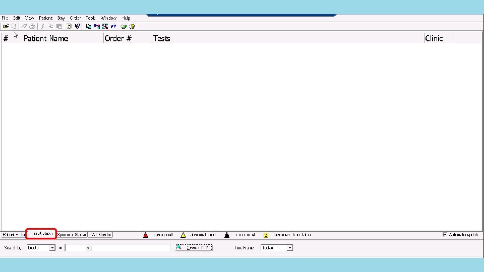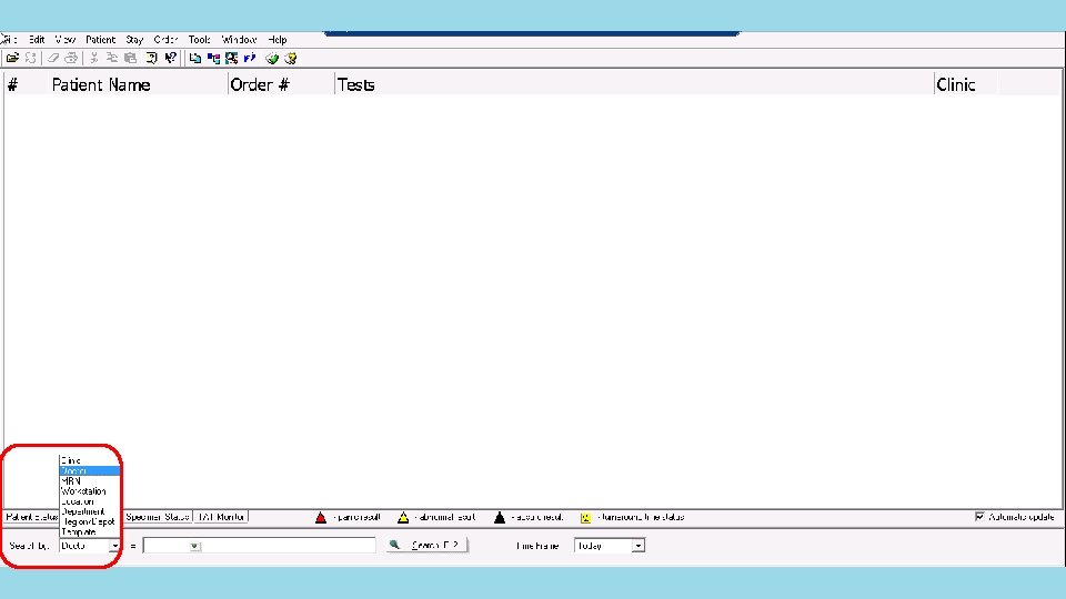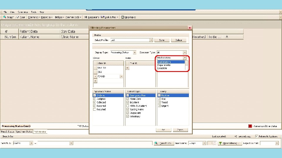 Introduction to the OSM ]OSM = Order Status Monitor ]A robust tool within the Soft. Lab Query function. ]Enables you to search for and view dynamic statistics including: 4 Results 4 Specimen statuses 4 Turnaround times ]Output 4 Display 4 Configurable