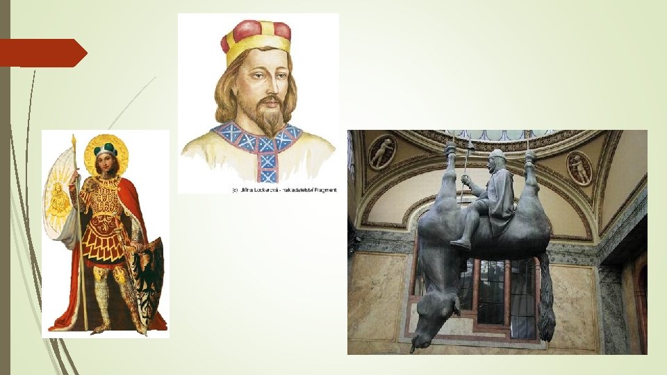 Svatý Václav patron české země otec: Vratislav, matka: Drahomíra, bába: Ludmila, mladší bratr Boleslav velmi vzdělaný, slovanské i latinské texty v jeho 13 letech mu zemřel otec, měl nastoupit na trůn byl v nemilosti u českých mužů, nabádali Boleslava vůči Václavovi vybudoval v Praze kostel – Chrám sv. Víta Boleslav nechal zavraždit Václava 28. 9. 935 prvním svatořečeným českého původu 3 roky po jeho zavraždění v souvislosti s přenesením jeho ostatků uctíván jako svatý pro svou zbožnost