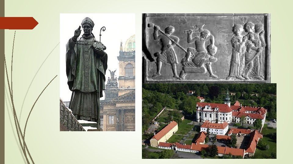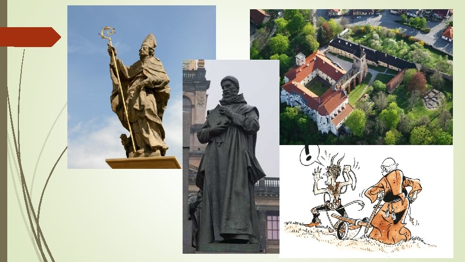Svatý Prokop kněz, poustevník, první opat Sázavského kláštera patron horníků, zemědělců a vinařů 970 (990) – 1053 oženil se, měl potomka → vzdal se jich a stal se poustevníkem odešel do jeskyně (poblíž Kouřimi), kterou obývalo tisíce ďáblů → zkrotil je, dle legendy s nimi oral vznik mnišské osady, kostelíku zasvěceného Panně Marii a sv. Janu Křtiteli → zabloudil sem Kníže Oldřich a založil zde Sázavského kláštera (Břetislav ? ? ? ) vedl bohoslužby ve staroslověnštině zúčastnil se přenášení ostatků sv. Vojtěcha z Polska do Čech 1204 - svatořečen