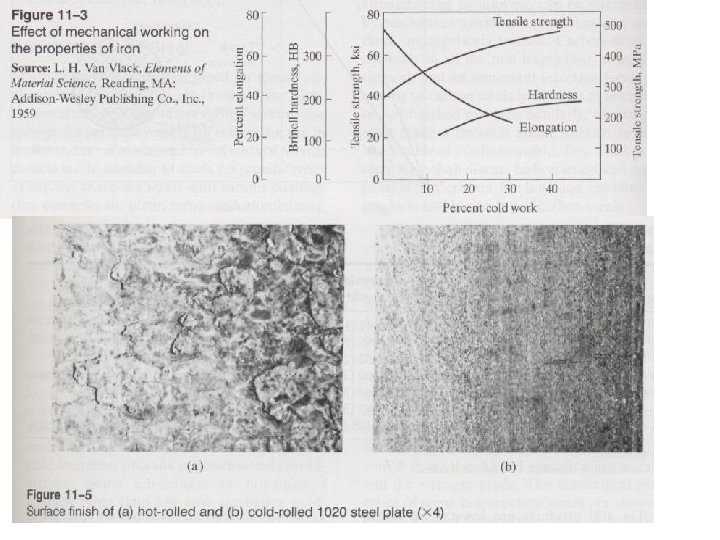 HRS vs. CRS • CRS – coil of HRS rolled through a series of rolling mills AT ROOM TEMPERATURE. – Since rolled at room temperature, get crystal defects called dislocations which impede motion via slip! – Work hardening – Limit to how much you can work harden before too brittle. – How reverse? Can recrystallize by annealing. • CRS Characterized by: – Less ductlie – almost brittle (i. e. % elongation 5 to 10%) – High strength