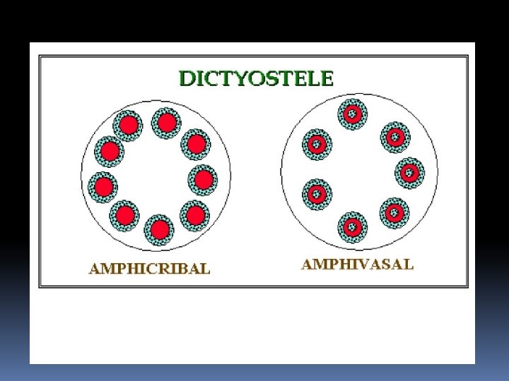 3. Dictyostele It is the advanced type of siphonostele where leaf gaps are present and the successive gaps may be overlap each other.