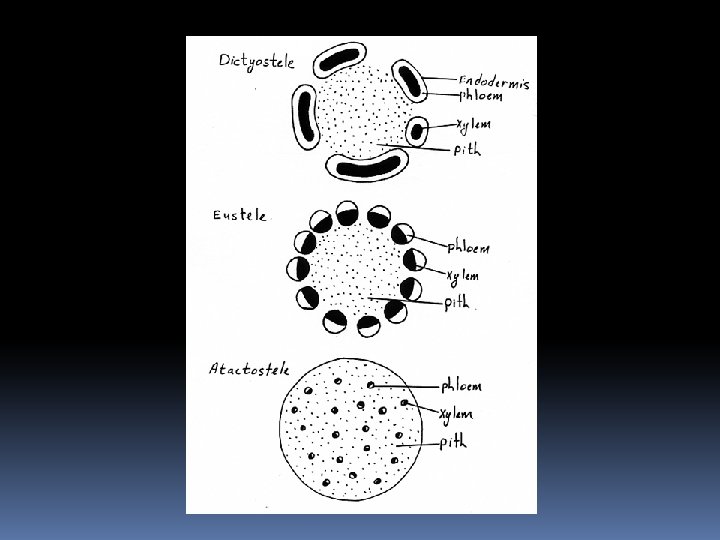 TYPES OF STELE c) Dictyostele a) Protosteles b) Siphonostele d) Eustele e) Atactostele