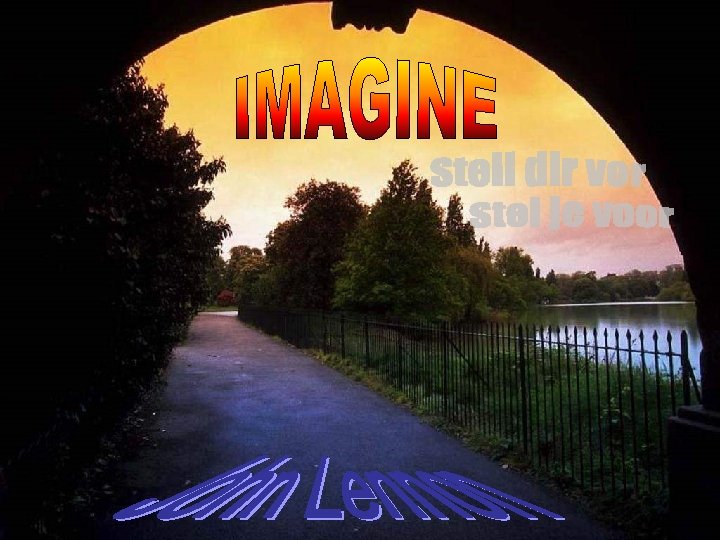 Stell dir vor, alle Menschen leben für das “Heute". Imagine all the people living for today Stel je voor dat iedereen leeft voor de dag vandaag.
