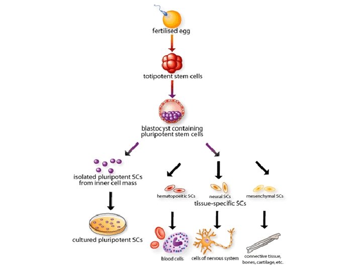After 5 days… • A hallow ball called blastocyst forms which contains 50 cells that will go on to form tissues of the developing embryo. • These 50 cells are called pluripotent embryonic stem cells.