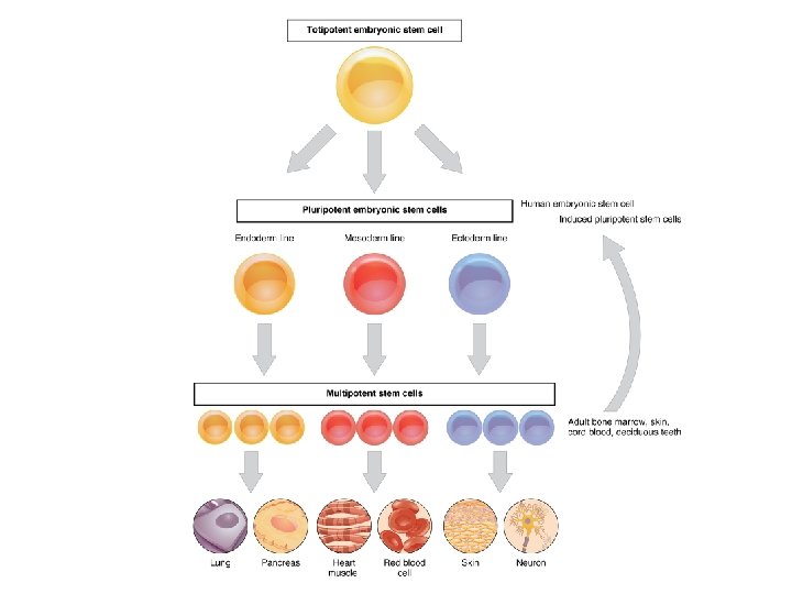 Totipotent • Totipotent cells types give rise to all cell types. • Undifferentiated cells. • Can keep dividing.