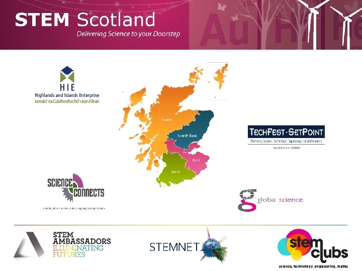 Contract Holder Contact Details • West of Scotland Science Connects Aileen Hamilton 0141 330 6396 • North East of Scotland Tech. Fest Setpoint Yvonne Mc. Lellan 01224 274348 • East of Scotland Global Science Frank Mc. Keever 01324 403103 • Highlands and Islands STEM North of Scotland Janice Wallace 01463 244287 Moyna Kennedy Consultant for STEMNET - Scotland@stemnet. org. uk