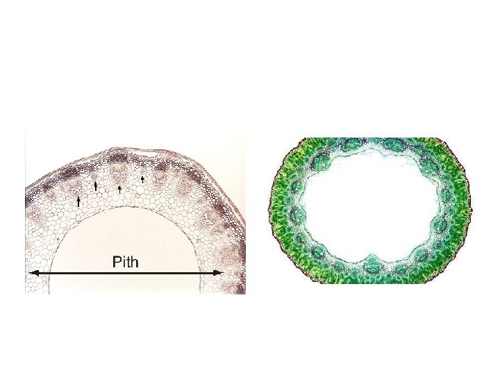 Stems I Primary Structure of Stems Dermal Epidermis Slides: 28 Download presentation Stems - I Primary Structure of Stems • Dermal – Epidermis • Ground Tissue – Cortex – Pith – Other • Vascular Tissue – vascular bundles – Collateral VB – Bicollateral VB – Concentric VB Acorus stem with endodermis Amphivasal VB Morphological concepts used to explain primary anatomy • Stelar Theory • Leaf Trace Theory Types of steles Protosteles -------> Siphonosteles-------> Protosteles have a central core of vascular tissue surrounded by cortex (not shown) Xylem Phloem Haplostele in Psilotum rhizome Haplostele in Selaginella root Actinostele in Psilotum stem Actinostele in Ranunculus root Plectosteles in Lycopodium stems Siphonosteles have a central pith surrounded by a cylinder of vascular tissue Ectophloic Siphonostele Amphiphloic siphonostele Dictyostele Ectophloic siphonstele in fern rhizome with a ring of xylem surrounded by a ring of phloem Amphiphloic siphonostele in a fern rhizome with two rings of phloem on each side of xylem Leaf traces and leaf gaps Siphonostele with a leaf gap and leaf trace Dictyosteles are considered amphiphloic siphonosteles with overlapping leaf gaps Modified siphonosteles Eustele Dicots and gymnosperms Monocots Evolution of stelar types Flattened protostele in Selaginella stem Flattened haplostele? OR Actinostele with two arms? Actinostele with irregular shape Or a plectostele with connections between xylem areas? Stele in stem Asteroxylon (fossil member of Division Lycophyta) Leaf traces originate at the apical meristem Leaf traces Anatomy of nodes Unilacunar with 2 traces Trilacunar with 3 traces Unilacunar with 1 trace Multilacunar with many gaps and many traces