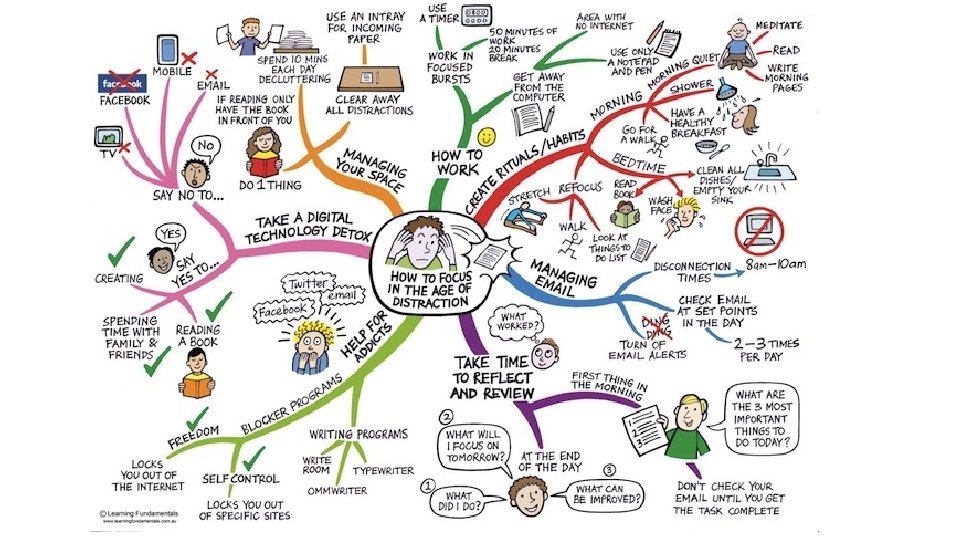 The Weekly Review 1. Set aside an hour a week – on a Friday if possible – this time MUST be sacred – don’t let anyone distract you. 2. Split the hour up into your subjects – so 15/20 mins per subject. 3. For that 20 mins for each subject: - Check your notes from that week are clear/legible and in order - Summarise your learning in a quick diagram/mind map. - Highlight material you have found difficult and may need more help one. - Go through the tasks/deadlines you’ve been given and plan for the week ahead. Once you’ve done this 3 times for each subject you should be feeling good – you’re in control and you know what needs to be done. You can leave school on a Friday knowing you are on top of things!