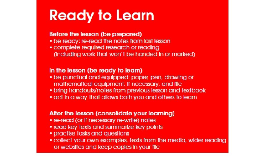 Where do students go wrong? • • • Lack of motivation Not attending lessons/Poor attendance Leaving work until the last minute Missing deadlines Failing to see the big picture in terms of how much work needs to be done Not asking for help Complacency – “I only did last minute revision at GCSE and it worked” Spending too much time doing paid work Not getting enough sleep Refusing to use study time wisely – just wanting to ‘chill’ in the common room Filling their time with anything except study!